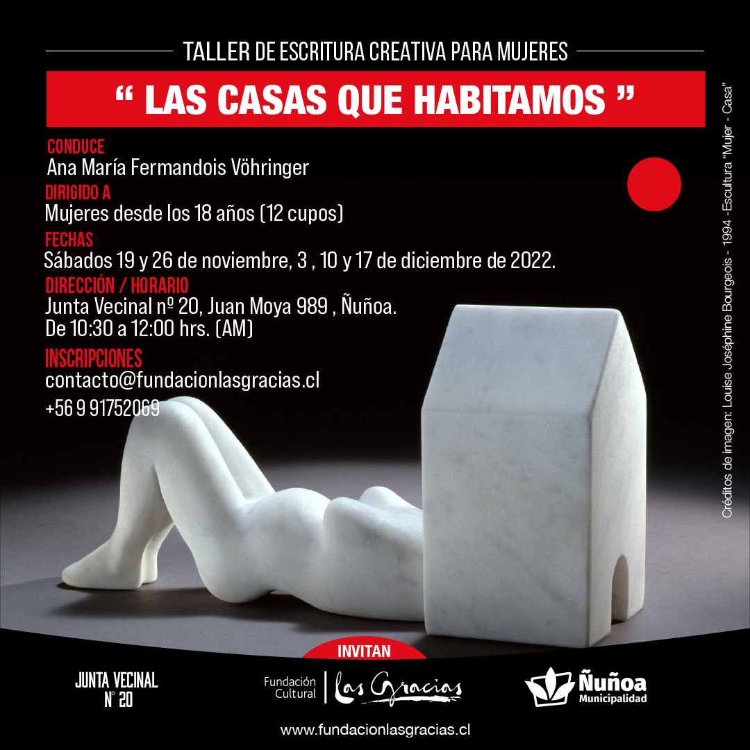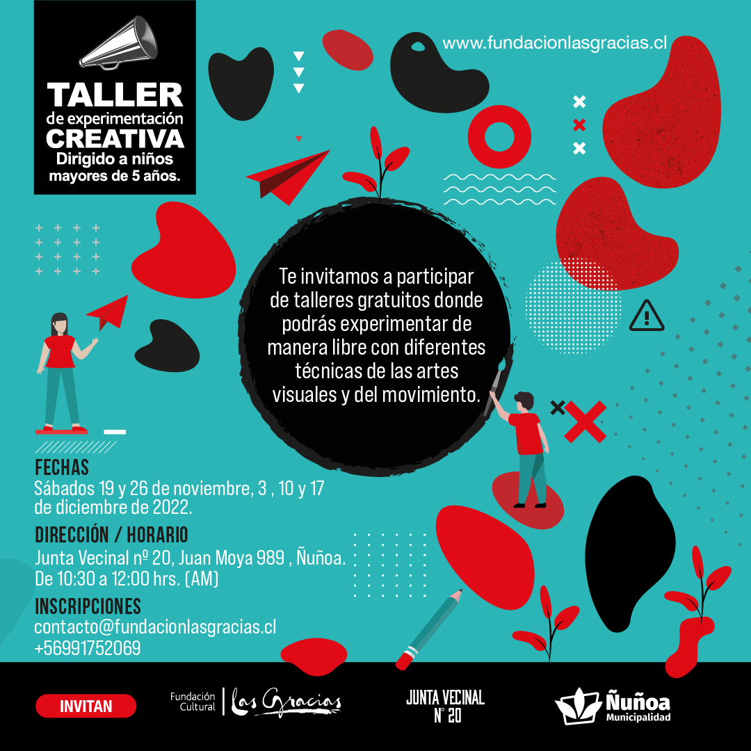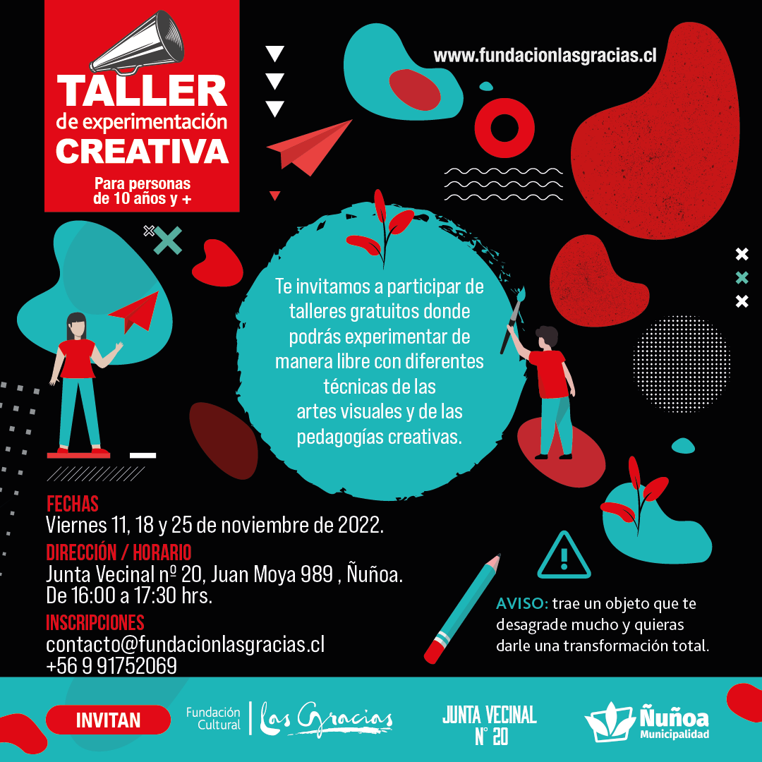 Fundación Cultural Las Gracias en alianza con la Junta Vecinal nº 20 de Ñuñoa y la Municipalidad de Ñuñoa, realizan los siguientes talleres: